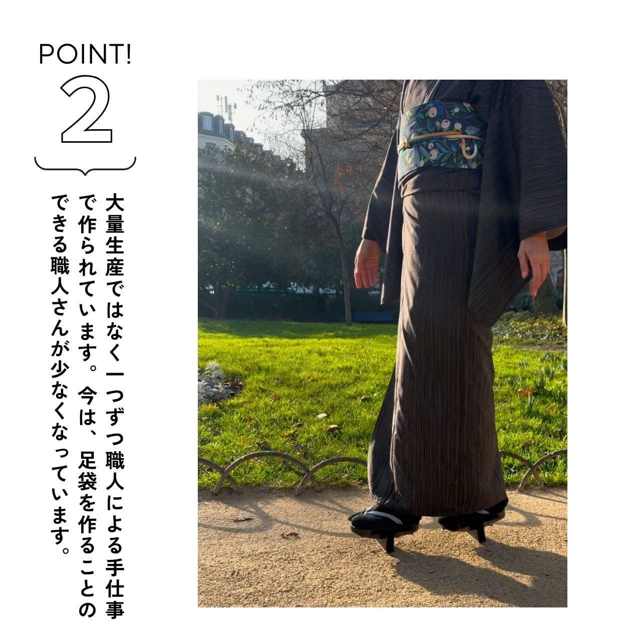 「一本歯下駄で自由に動くための足袋」